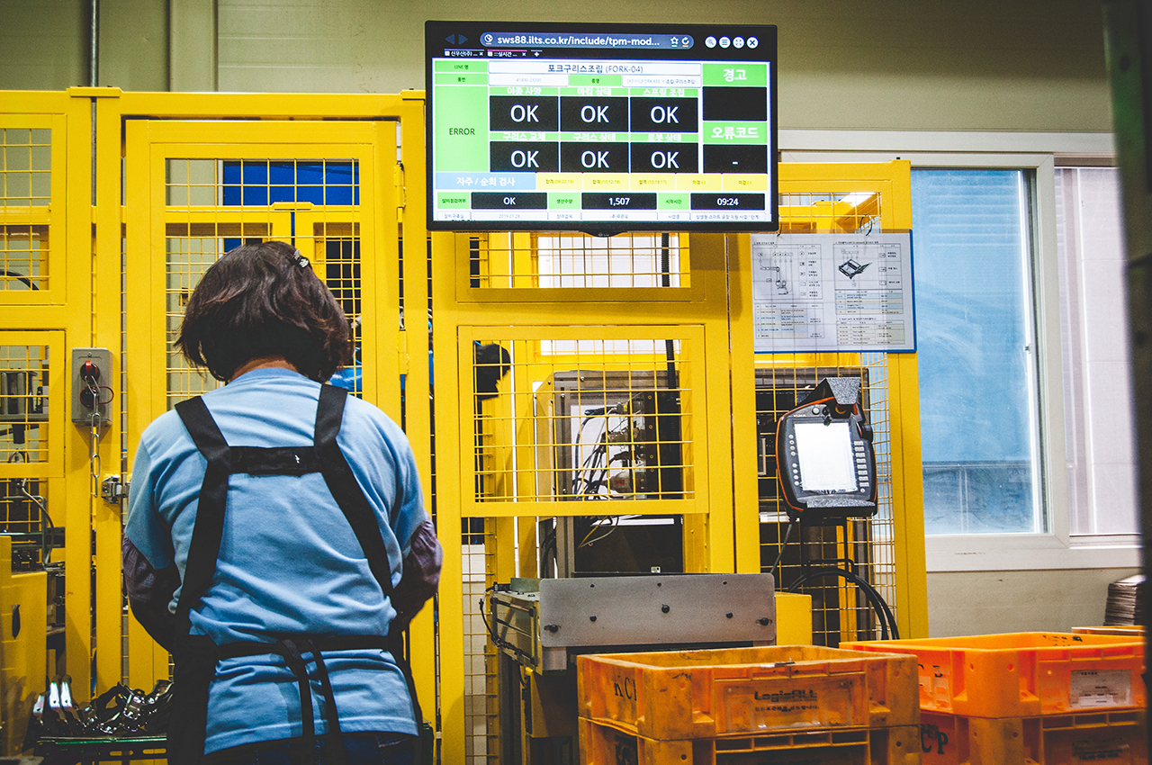 - 비가동이 줄었고 불량률이 현저히 감소했습니다. 이전에 수동으로 하고 있는 것을 자동으로 하고 있는 점이 가장 큰 차이죠. 비가동시 경보가 엄청 크게 울려서 비가동 인지가 확실해졌고 비가동이 감소하는 결정적인 요인으로 작용했습니다. 또 불량율도 감소했습니다. 이전에는 공정 누락이 많아 CDK 선별하는 비용이 많이 들었는 이것이 사라졌습니다. 비전 선별기도 도입할 예정이니 앞으로의 효과도 기대해볼 수 있겠죠. 근무 환경적인 면에서는 단순노동이 기술 오퍼레이트화 되어간다는 점이 있겠죠. 물건 넣고 뺴고 하는 것이 아닌 PLC 등으로 기능직화 되어가고 있습니다. 이런 변화들은 결국 생산성이 증가에 기여했습니다. 생산성이 도입 이전보다 17.6%가 증가했습니다.